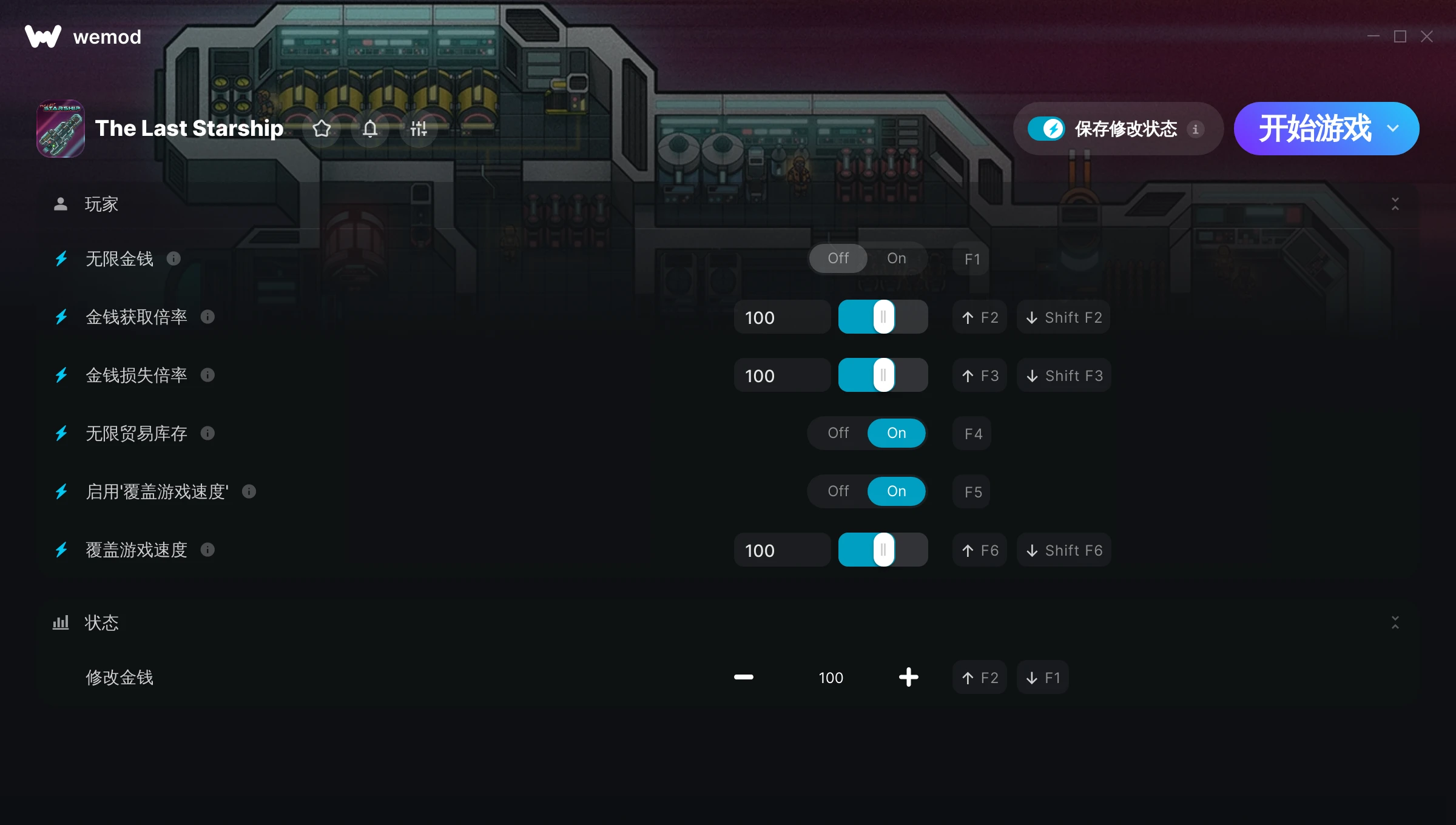 如何在 The Last Starship 中使用修改器?WeMod 会安全地扫描并显示你的 PC 上已安装的所有游戏。只需从列表中选择一款游戏并点击“开始游戏”,即可快速启动游戏。当游戏完成加载并进入游戏画面后,你就可以开启各种修改了!这些修改适用于我的游戏版本吗?WeMod 还能使用先进技术自动检测你的游戏版本,并告知你该游戏是否支持修改。如果暂无修改,你可以选择直接进入游戏或提交制作申请!