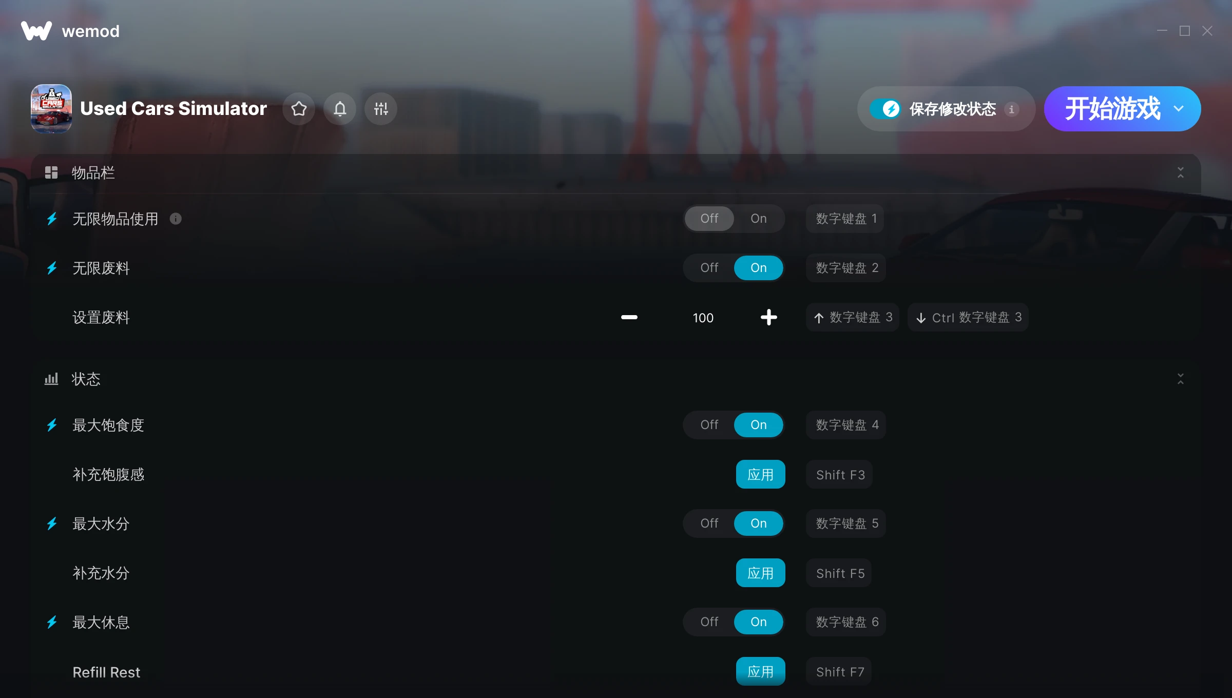 如何在 Used Cars Simulator 中使用修改器?WeMod 会安全地扫描并显示你的 PC 上已安装的所有游戏。只需从列表中选择一款游戏并点击“开始游戏”,即可快速启动游戏。当游戏完成加载并进入游戏画面后,你就可以开启各种修改了!这些修改适用于我的游戏版本吗?WeMod 还能使用先进技术自动检测你的游戏版本,并告知你该游戏是否支持修改。如果暂无修改,你可以选择直接进入游戏或提交制作申请!