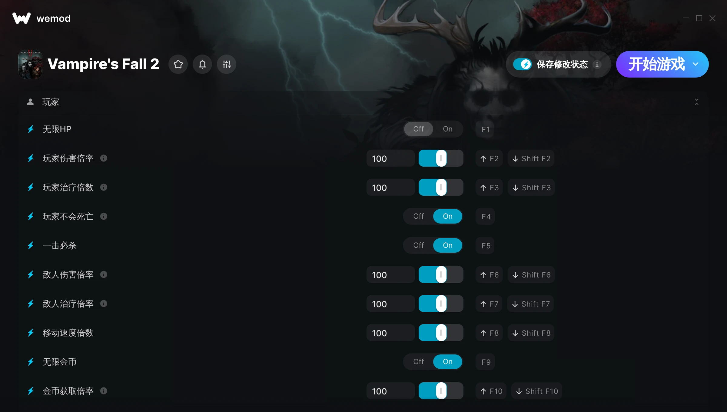 如何在 Vampire's Fall 2 中使用修改器?WeMod 会安全地扫描并显示你的 PC 上已安装的所有游戏。只需从列表中选择一款游戏并点击“开始游戏”,即可快速启动游戏。当游戏完成加载并进入游戏画面后,你就可以开启各种修改了!这些修改适用于我的游戏版本吗?WeMod 还能使用先进技术自动检测你的游戏版本,并告知你该游戏是否支持修改。如果暂无修改,你可以选择直接进入游戏或提交制作申请!