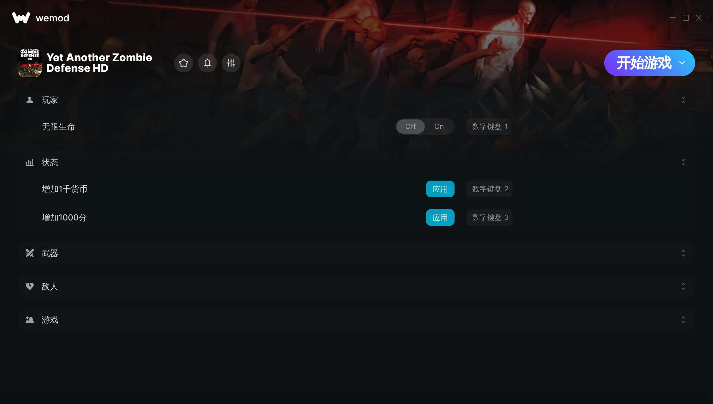 如何在 Yet Another Zombie Defense HD 中使用修改器?WeMod 会安全地扫描并显示你的 PC 上已安装的所有游戏。只需从列表中选择一款游戏并点击“开始游戏”,即可快速启动游戏。当游戏完成加载并进入游戏画面后,你就可以开启各种修改了!这些修改适用于我的游戏版本吗?WeMod 还能使用先进技术自动检测你的游戏版本,并告知你该游戏是否支持修改。如果暂无修改,你可以选择直接进入游戏或提交制作申请!